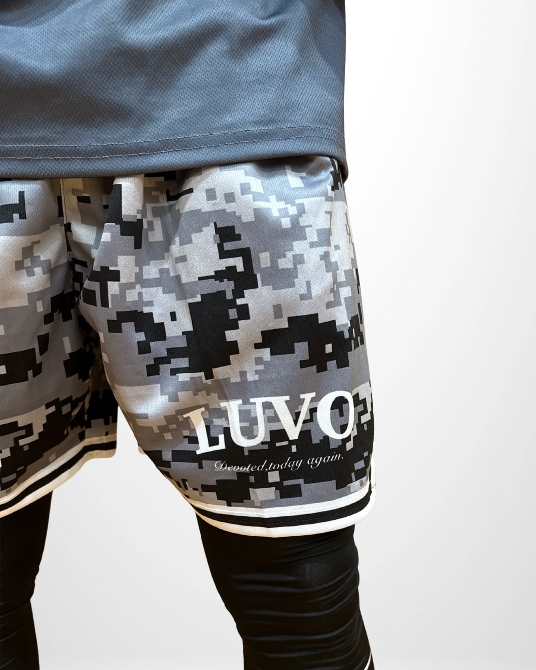 ミリタリーから着想を得たデジタルカモを、都会的なグレーで再構築。